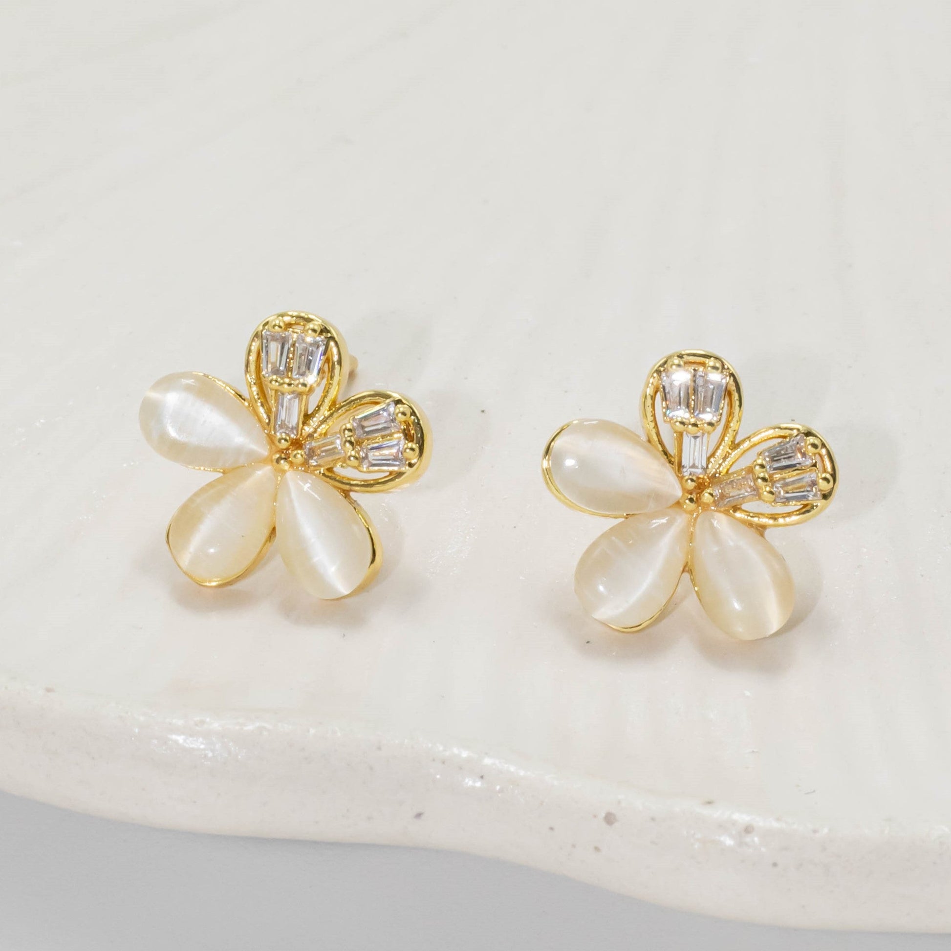 Arete flor gema baguette